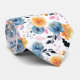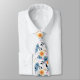 Den här vackra nektien har ett modernt blommönster i blått, orange och rosa på vitt.