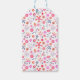 Den moderna rosans och orangens ljusa blommor i ett utspridt mönster på vit bakgrund. Bra koordinerande favorittaggar för att matcha firande. Tomt utrymme på baksidan för en handskriven anteckning.