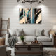Transform your space with this modern abstract art. Fluid blue and cream lines contrast with sharp geometric shapes. Ideal for contemporary decor, technology, and corporate branding. Dynamic and sophisticated design that impresses.