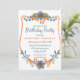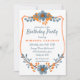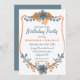 Lägg till din födelsedagsfest-information till det här moderna ram i orangen med blu grått-blommor.