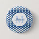 Modern Blue and White Scallops Monogram och Namn Knapp