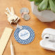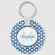 Modern Blue and White Scallops Monogram och Namn Nyckelring