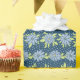 Det här blommönstret omsluter pappra rullar med pastel blåa blommor med honeydew grönt löv på en mörk blått bakgrund med små punkter. Den är söt för helgdagarna och okasionerna Vår och Sommaren.