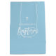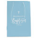 Modern Blue Boy Baptism Medium Gift Bag: En snyggt medelstor presentväska designad för din pojke baptism firande. Ett modernt blått tema med ren geometrisk utformning, subtila accenter och typografi av elegant. Perfekt för att presentera favoriter, keepsakes eller presenter. Den här väskan ger en polerad beröring till din speciella dag.