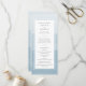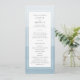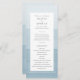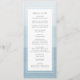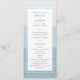 Modern blå Bröllopsprogram. Det här vackra och elegant dammiga blå bröllopsprogrammet har en vattenfärgsmålad ombre-bakgrund med vit gräns. Baksidan av inbjudan har samma blå vattenfärgsbakgrund. Sök efter matchande objekt i samlingen Dusty Blue Watercolor Ombre Bröllop.