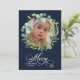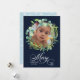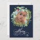 Skicka helgdag varmt önskemål och hälsning till dina kära med det här vackra, elegant- och festive-fotokortet som innehåller "God jul" i elegant, handskrivet manusmanusgrafi med vacker ram av eukalyptus med tillsatt helgdag. Återvänd om du vill visa ett vackert vitt snöflingor i mjuk baby blue bakgrund. Önska er alla God jul och Gott nytt år!