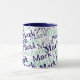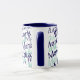 Typography pattern of blue color names (works better for a short name), diagonally printed all over the ceramic mug.