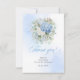 Boho wedding thank you card with blue hydrangea watercolor flowers and eucalyptus greenery, professionally printed by Zazzle on premium cardstock with crisp detail, rich color, and a smooth elegant finish.