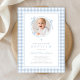 Modern Blue Gingham Bow Photo Boy Baptism Invitation. For best results upload a square image of the baby.