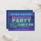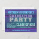 En modern inbjudan till tittar studenten ser ut med blått glitter. Observera att det här är grafik och att det inte finns något rött glitter.