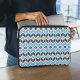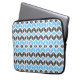Laptop sleeve har ett färglöst geometriskt örringben mönster i blått, mörk grått och vitt.