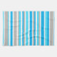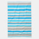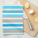 Den här färglösa kökshandduken har en modern strimlad mönster i vita, grått och blå nyanser.