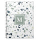 Modern Blue Grönt Terrazzo Marble Monogram Anteckningsbok