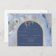 Modern Blue Guld Agate Marble Arch Bröllop Vykort