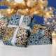 Modern Blue Guld Dahlia Blommigt Presentpapper