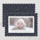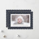Skicka semesterhälsningar med anpassade och personlig till vänner, kolleger och familj i enkla, minimalistiska, elegant, roligt, festliga och moderna fotokort! Ett vackert ram med olika vinterstjärnor från guld på blå himmel vid marinens baksida omger ditt foto på kant papper runt scallop. Anpassningsbarna hälsning "God jul och din familj namn har modern typografi. Vänd för att visa en vacker vinterstjärna i guld på blå himmel mönster vid flottan.