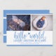 Modern Blue Hej World Photo Birth Stat Meddelande