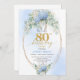 Modern Blue Hydrangea Gold Frame 80th Birthday Inbjudningar