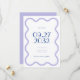 Det här bröllop spara datum-kortet har en vågigt gräns. Det användor lugn färg som lavender inspirerad av lavender fält. Roligten och snyggten typsnitt lägger till en aning elegans, och ord i mitten markeras med ljusblått för en roligt av färg och användor med ett större teckensnitt storlekt.