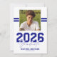Announce a major milestone with this modern masculine graduation announcement card. Featuring a sleek white background, the front showcases a square photo of the graduate accented by two sporty blue stripes running through the background for a bold, athletic feel. A strong “2026 Graduate” title is paired with the graduate’s name and the school, college, or university they attended.
