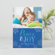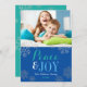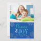 Modern Blue Peace and Joy Snowflake Photo Julkort