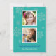 Modern och färglös fotohälsningskort med helgdag har elegant Peace & Joy-text, anpassningsbar text på framsidan och baksidan, och utrymme för tre (3) foton. En gräns av platinum grått färgad snöflingor ger accent för denna moderna kortdesign i klara vindrutor av royal blå, teal grönt och vit - som alla kan ändras.