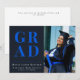 Celebrate your graduate in style with this modern photo graduation announcement card featuring bold blue typography and a sleek black design. Perfect for high school or college graduation announcements with a personalized photo and class year.