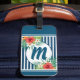 Modern Blue Rand och Flowers Monogram Bagagebricka