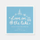 Modern Blue Script "Love on the Lake" Bachelorette Weekend Napkins. Modern and elegant, bright ocean blue and beige "love on the lake" bachelorette weekend party napkins, designed with cute doodles, and script lettering. Personalize with the bride's name, your bachelorette location, and bachelorette weekend dates below.