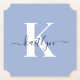 Dessa enkla, ljusblå biljett-formade pappra underlägg med elegant i det första namnen i ett typsnitt av trendiget i marint blått som skrivs över ditt första ursprungliga typsnitt i ett modernt typsnitt i vitt är perfekt för att hålla bord och räknare fria från vatten ringar. De absorberar droppar så att du inte behöver oroa dig när du roar dig eller njuter av en drink. De är snyggt och trendig och ändå väldigt klassiska.