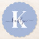 Dessa enkla, ljusblå, ljusblå, runda, pappra underlägg i kant med ditt första namn i ett typsnitt i trendiget i marint blått som skrivs över ditt första typsnitt i ett modernt typsnitt i vitt är perfekt för att hålla bord och räknare fria från elegant vatten. De absorberar droppar så att du inte behöver oroa dig när du roar dig eller njuter av en drink. De är snyggt och trendig och ändå väldigt klassiska.