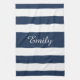 Modern Blue Stripe Mönster Namn Kökshandduk