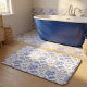 This Modern Blue Toile Cacao and Chocolate Pattern Bath Mat would look beautiful in your home, adding a fresh and cheerful touch to your living space and bringing a bright, uplifting feel to any room. If you would like to personalize this product, please contact the designer.