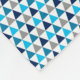 Den här färglösa filten har en söt geometrisk mönster med liten grått och blå trianglar.