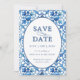 Modern Blue White Mediterranean Bröllop Spara Datumet