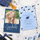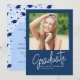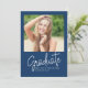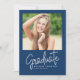 Modern Blue White Script Photo Graduation Party Inbjudningar