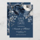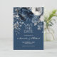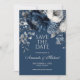 Modern Blues & Grått Blommigt Bröllop Spara Datumet