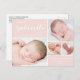 Modern Blush Babyflicka Födelse Annonsering Postko Vykort