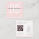 Modern blush pink and white monogram Qr Code Fyrkantigt Visitkort