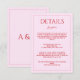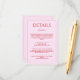 Modern blush pink red minimalist wedding details tilläggskort