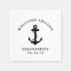 Modern nautiska pappra blöjor för din båt som visar ett svart ankare och "Välkommen ombord" och din båt namn och plats i elegantens typografi och manus.
