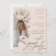 Inbjudan dina gäster till din studentfest med vår moderna plan för tropisk blommigt av nordlig i party. Vår design har våra handritade botaniska blommor och tropiska greer. Lägg till gradens foto i en modern abstrakt-ram-design. Anpassa till namn, år, skola och händelseinformation. Baksidan har våra vackra handdragna botaniska blommigtar som skapar ett vackert blommönster. Alla illustrationer är handritade originalbilder av Moodthology Papery.