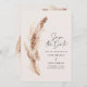 Modern bohemisk naturlig pampasgräs bröllop spara datum inbjuden. Avstämmande elegant skripttext och trender botaniskt löv.