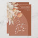 Modern bohemisk terracotta pampas-gräs snyggt bröllop spara datum inbjudan.