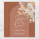 Modern bohemisk terracotta pampas gräs snyggt bröllop spara datum inbjuder roligt modern vin-märkning.