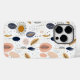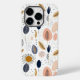 En modern, abstrakt boho botanical mönster i , nyp och grått mot vit bakgrund.