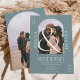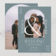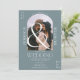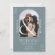 Modern boho arch 2 foton bröllop dammiga blått inbjudningar