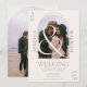 Modern boho arch 2 foton elfenben och grått bröllopsinbjudan, lägg till initialer och datum. En enkel och minimalistisk coola med en bohemisk ökenvibe. Perfekt för avslappnad utomhus bröllop.