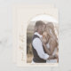 Det här moderna boho arch-fotot som sparar datumkortet är perfekt för ett enkelt bröllop. Bohemikrämen och guld har en unik industriell präglingstypografi med minimalistisk vintage stil.