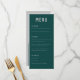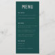 Modern Bröllop-menu i mörk grönt och grått med stark ren typografi och en boho-båge på baksidan av kortet. Anpassa det här menykortet för Bröllop så att det passar dina behov, ändra inslag och färg om du vill. Ta helt enkelt bort texten på baksidan om du vill använda det här menykortet till ett annat firande, t.ex. födelsedag, catering osv. Matchande bröllop-kontorsmaterial finns i min butik.
